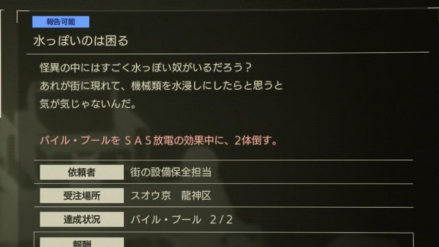 で、これちゃんとこなしたのですがなぜか依頼主に報告できない。…報告可能ってなってるしちゃんとやってるのになんでだ? わからん。