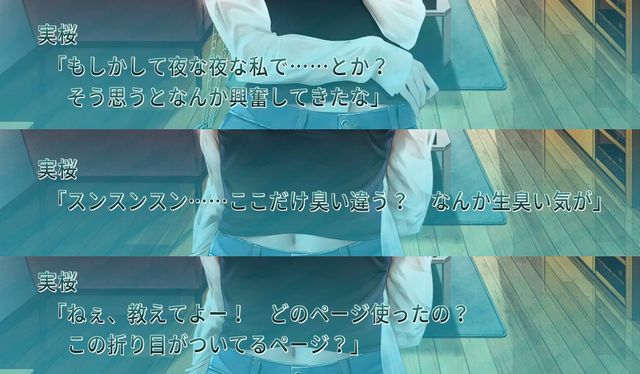 そのうえ、臭いまでかぐ。こーれ主人公君が雑誌の自分の写真にぶっかけてるのを想像して言ってる。実桜ちゃんドスケベ。