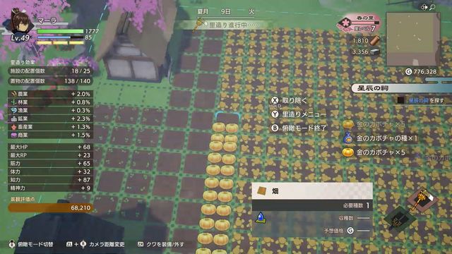 この時点で、すでに金の作物(金のカブなど)を多量栽培して売り飛ばすビジネスを確立させていたので。春の里の畑がほぼ金の作物で埋まってるし、種も在庫も十分ある。